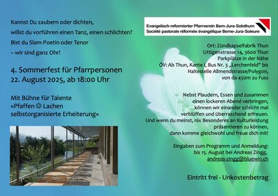 Dem Pfarrverein Bern-Jura-Solothurn ist ein unabhängiger theologischer ThinkTank angegliedert. Er organisiert Tagungen zu pfarramtsvirulenten Themen…